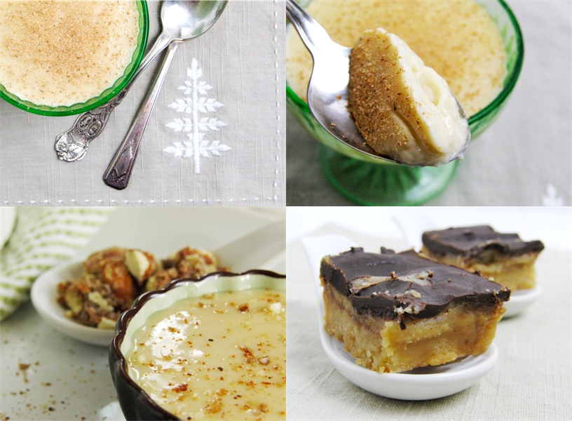 There will be no more layer cakes for quite a while now; instead, it's back to small, individual desserts once a week, with no tempting leftovers. This eggnog pudding is right up that alley. It's smooth and silky, slightly sweet, and oh-so-easy with just 4 ingredients and 10 minutes of your time. I would have liked a little cookie with the pudding for a crunchy/chewy texture to balance the silkiness of the pudding, but with no cookies in the house, we ate a little square of the caramel bars that my mom brought us from someone she works with. They were so good I don't dare make them.